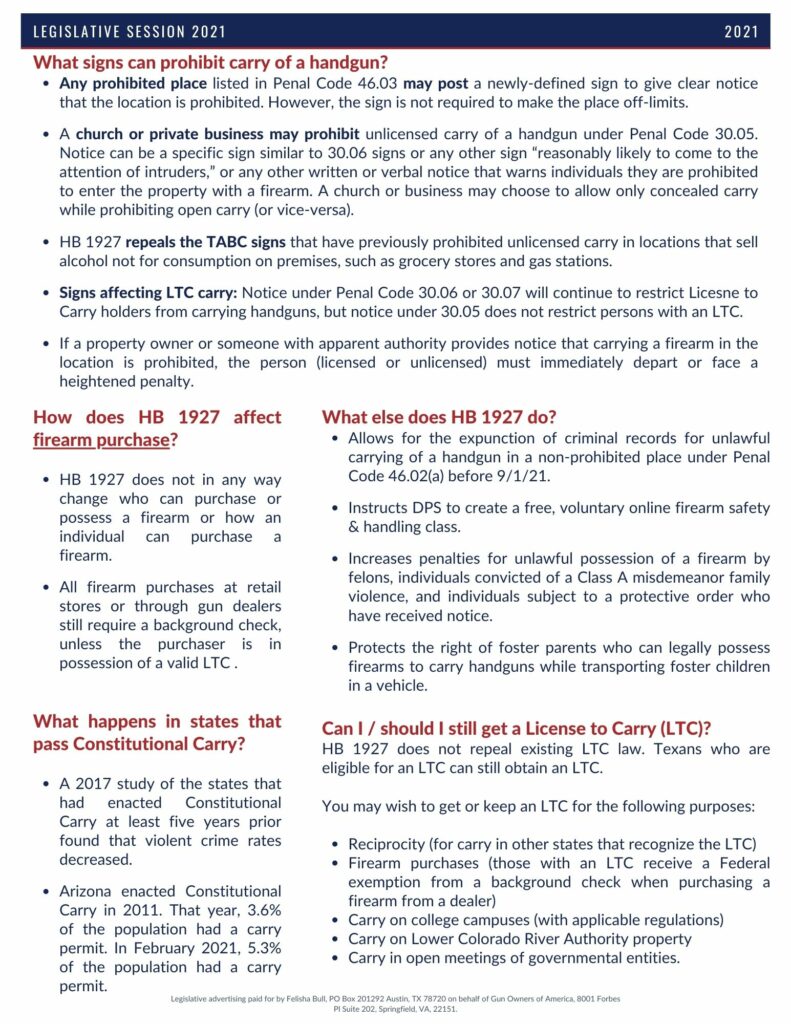 CLICK HERE to download the HB 1927 Constitutional Carry FAQ