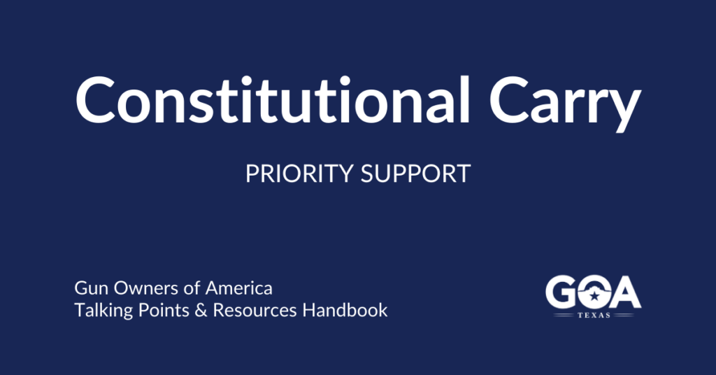 Suppressor Freedom Current Law Currently, to own a suppressor, you must comply with an onerous set of Federal rules and regulations that include a $200 tax stamp and a lengthy wait – sometimes over a year. Also, separately, the State of Texas criminalizes owning a suppressor outside of those regulations. GOA’s Position Texans should be […]