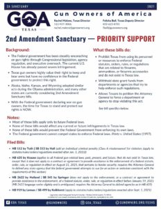 Last week, the House passed HB 2622 by Holland and the Senate passed SB 513 by Hall. Both of these bills contain language that is now being called “Second Amendment Sanctuary”—although the concept is not new. We have been testifying on similar bills (under different nicknames) in Texas since 2013.